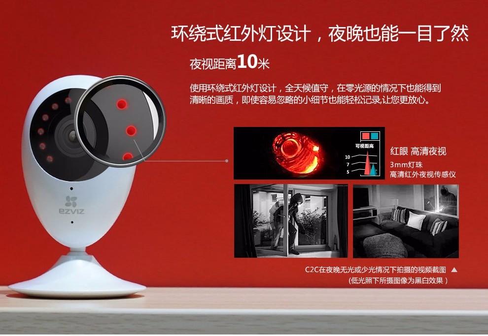 ???螢石高清家用網(wǎng)絡(luò)攝像機(jī),200萬像素,1080P高清分辨率,畫質(zhì)清晰,成像效果一流;高清廣角視角,輕松覆蓋每個角落,;紅外高清夜視效果翻蓋范圍達(dá)10米,再也不用擔(dān)心夜晚看不清的尷尬。