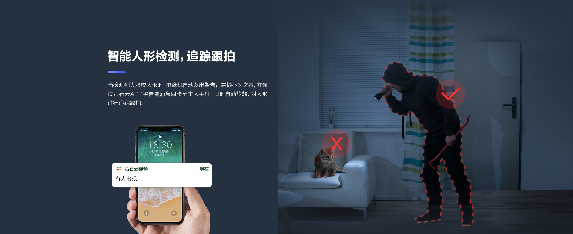 海康螢石C6CN星光級紅外夜視網(wǎng)絡(luò)攝像頭,可360度全方位監(jiān)控、雙LED紅外燈10米夜視距離、人臉人形偵測追蹤、一鍵鏡頭遮蔽隱私保護(hù)。